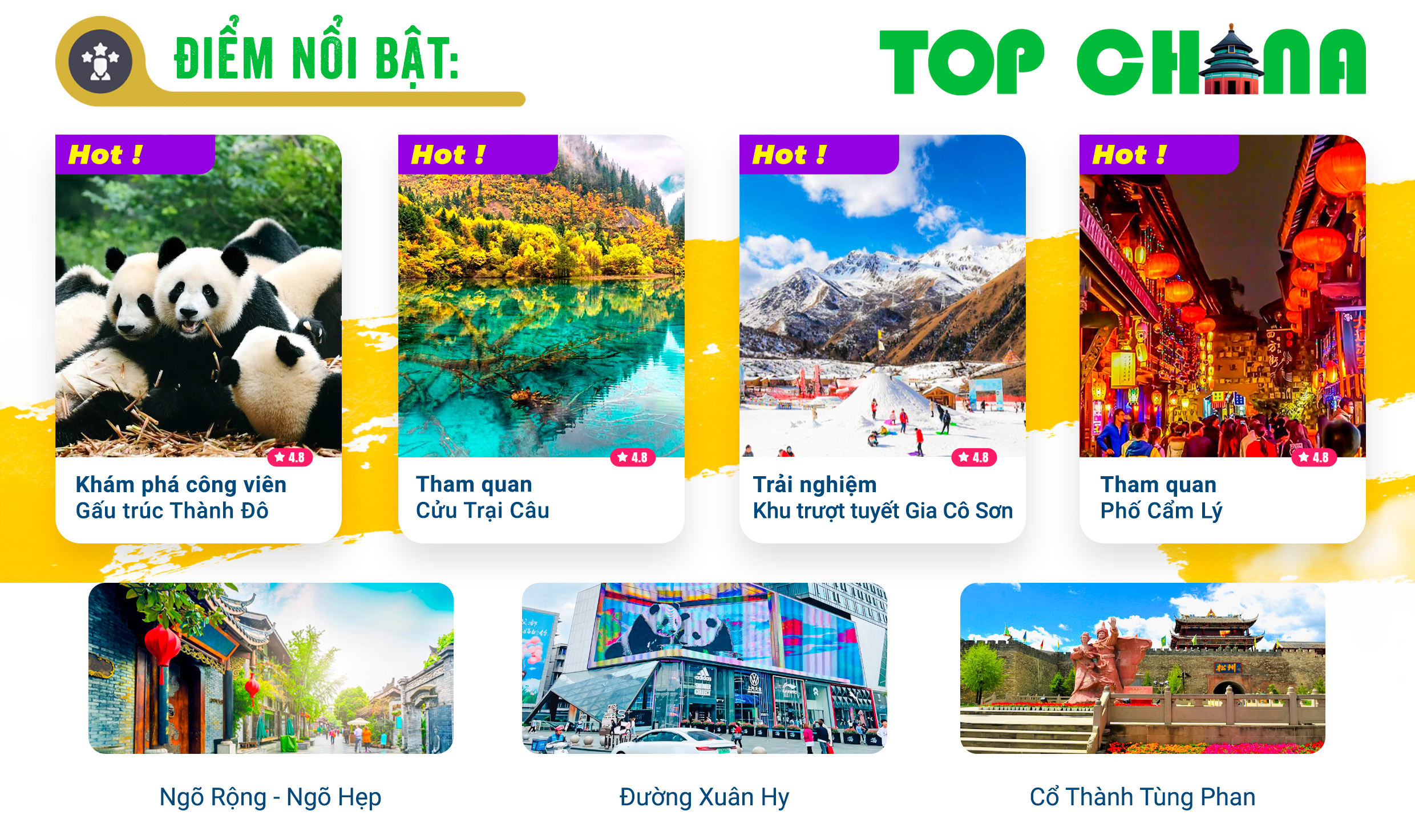 TRUNG QUỐC: THÀNH ĐÔ - CÔNG VIÊN GẤU TRÚC - CỬU TRẠI CÂU - KHU TRƯỢT TUYẾT GIA CÔ SƠN