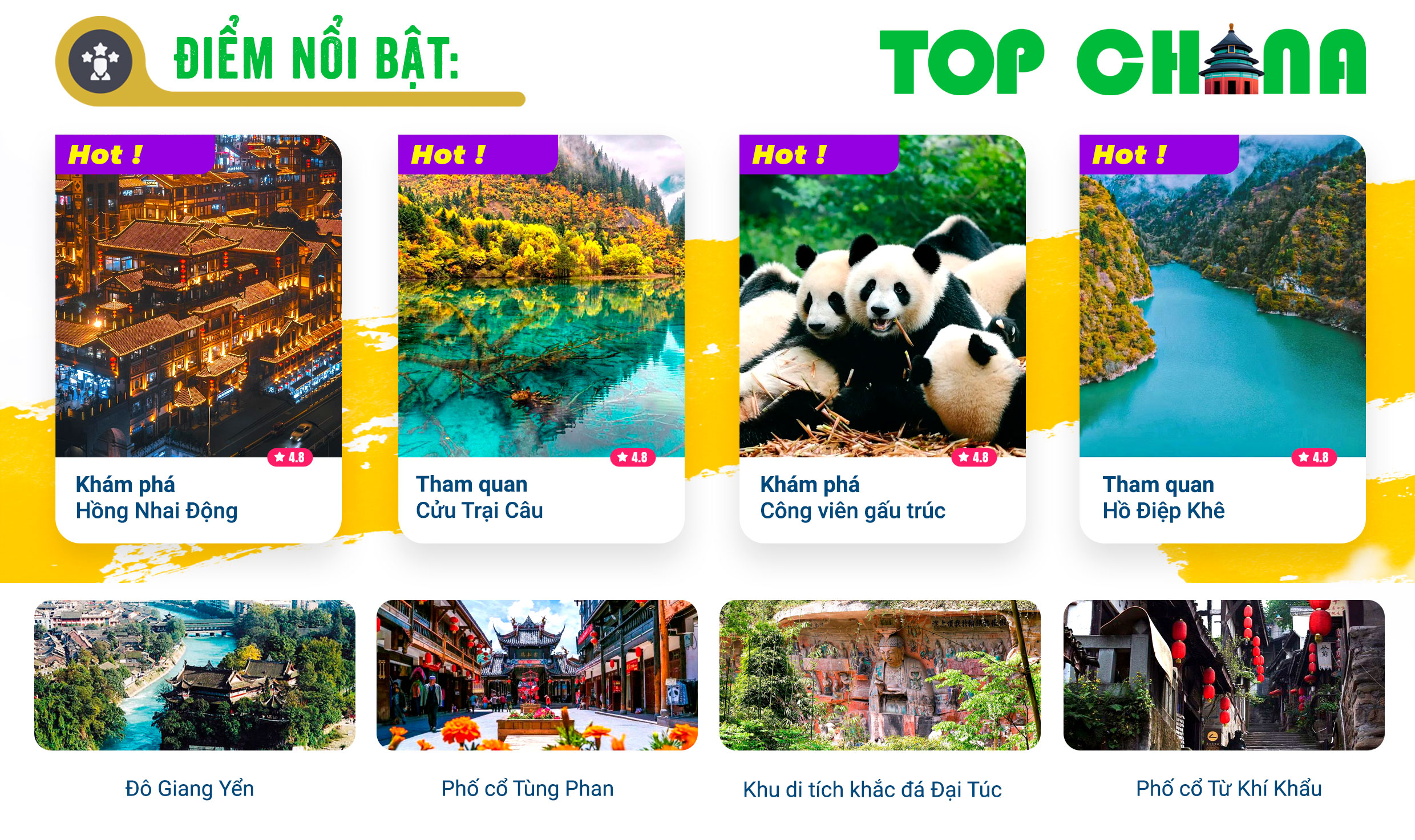 TOUR TẾT TRUNG QUỐC: TRÙNG KHÁNH - ĐẠI TÚC - THÀNH ĐÔ - CỬU TRẠI CÂU