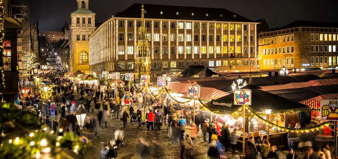 Được xem là chợ Giáng Sinh lâu đời nhất thế giới, Christkindlesmarkt tại Nuremberg thu hút hàng triệu du khách mỗi năm. Hơn 180 gian hàng gỗ nối dài khắp quảng trường Hauptmarkt, bày bán đồ thủ công, bánh gừng và xúc xích nướng. Đặc biệt, hình ảnh thiên thần Christkind – biểu tượng của Nuremberg – là điều khiến khu chợ này trở nên độc đáo.