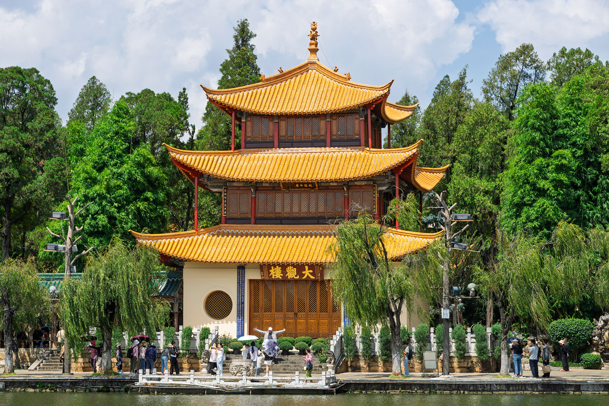 Đại Quan Lầu là một trong những công trình kiến trúc cổ kính và nổi tiếng của Côn Minh. Tòa lầu được xây dựng vào thời nhà Thanh, nhìn ra hồ Điền Trì, mang nét đẹp truyền thống của kiến trúc Trung Hoa với mái cong mềm mại và những cột gỗ màu trầm. Điểm đặc biệt nơi đây là câu đối dài nhất Trung Quốc được khắc ở mặt tiền, phản ánh cảnh sắc thiên nhiên và tâm tư của người xưa về vùng đất này.