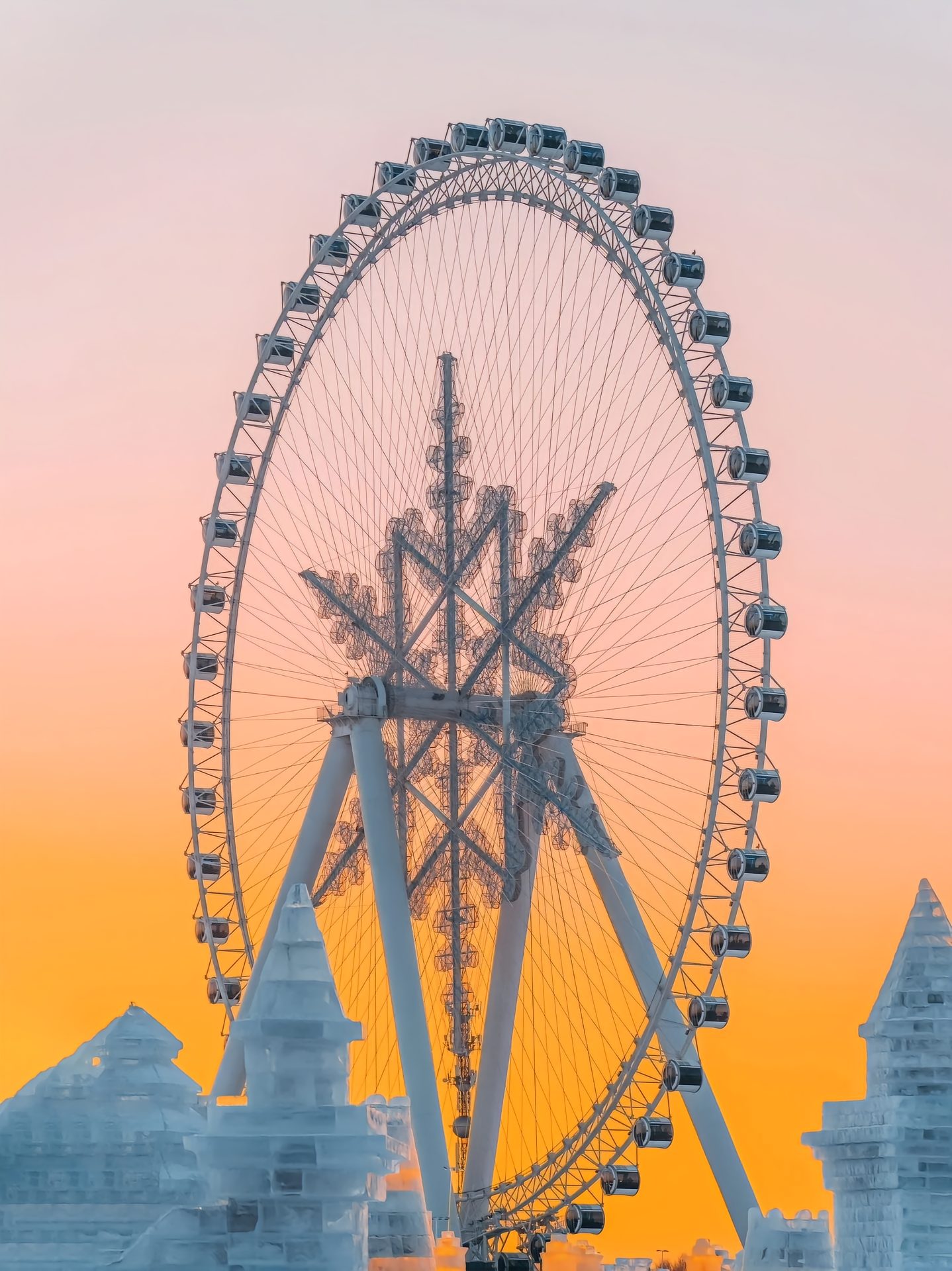 Khi mùa đông đến, toàn bộ công viên được bao phủ bởi tuyết trắng. Những tác phẩm băng đăng cao tới hàng chục mét, được thắp sáng bằng hàng nghìn đèn LED nhiều màu sắc, phản chiếu trên mặt băng tạo nên khung cảnh huyền ảo.