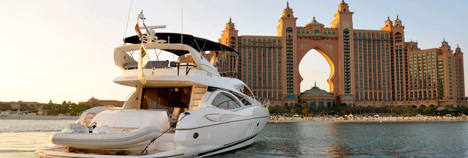 Một trong những trải nghiệm đáng nhớ nhất tại Palm Jumeirah chính là ngắm hoàng hôn trên du thuyền riêng.