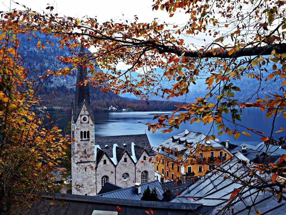 Hallstatt được ví như “ngôi làng thiên thần”. Vào mùa đông, ngôi làng ven hồ này trở thành bức tranh hoàn hảo: mái nhà phủ tuyết, mặt hồ phẳng lặng phản chiếu những ngọn núi Alps hùng vĩ.