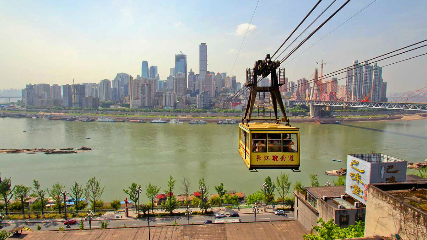 Một trong những biểu tượng không thể bỏ qua khi đến Trùng Khánh là cáp treo sông Dương Tử (Yangtze River Cableway). Hành trình dài hơn 1km đưa du khách bay lơ lửng trên sông, chiêm ngưỡng toàn cảnh thành phố phủ mây và những tòa nhà cao tầng phản chiếu ánh hoàng hôn.