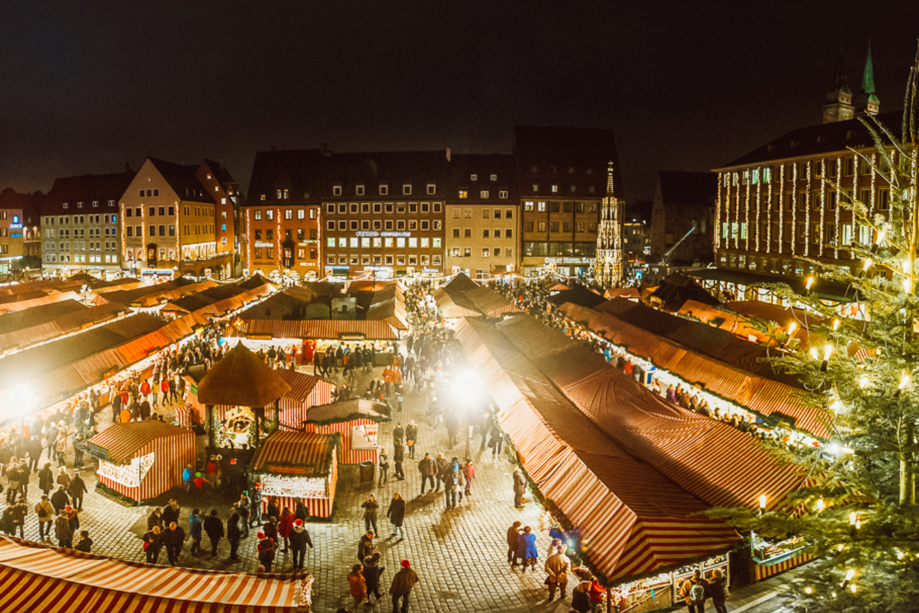Không thể nhắc đến Giáng Sinh ở Châu Âu mà bỏ qua Đức – nơi khai sinh truyền thống chợ Noel (Christmas Market). Thành phố Nuremberg nổi tiếng với Christkindlesmarkt – khu chợ Giáng Sinh lâu đời nhất, nơi hàng trăm gian hàng bán đồ thủ công, bánh gừng, rượu vang nóng và những món quà mang đậm nét văn hóa Đức. Không khí rộn ràng, hương bánh gừng thoang thoảng và những giai điệu carol cổ điển khiến nơi đây trở thành trái tim của mùa lễ hội.