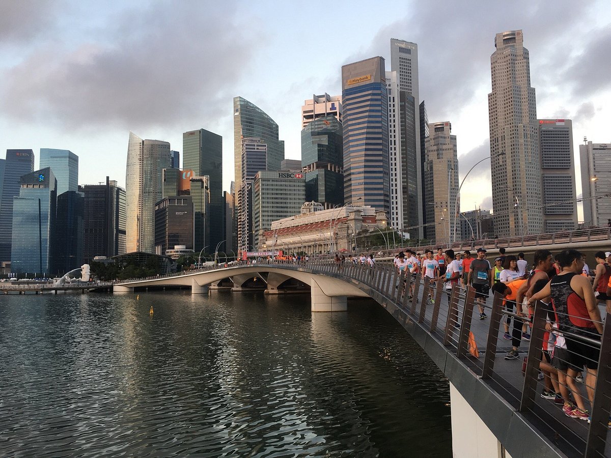 Marina Bay là khu vực an toàn, sạch sẽ và có lối đi bộ rộng khắp. Du khách có thể chọn hành trình đi bộ từ Helix Bridge sang Merlion để có trải nghiệm trọn vẹn.