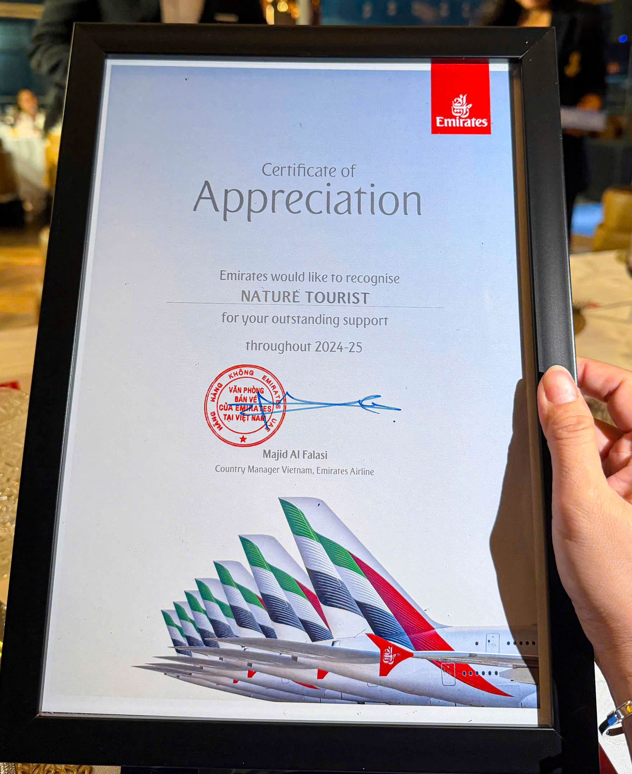 Nature Tourist vinh dự nhận Certificate of Appreciation từ Emirates tại sự kiện