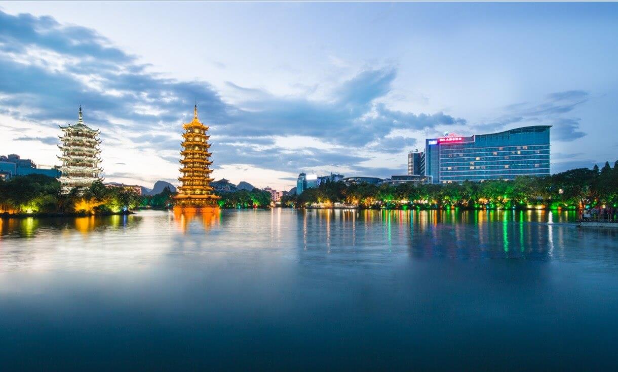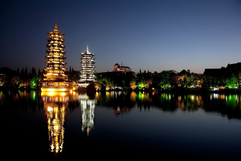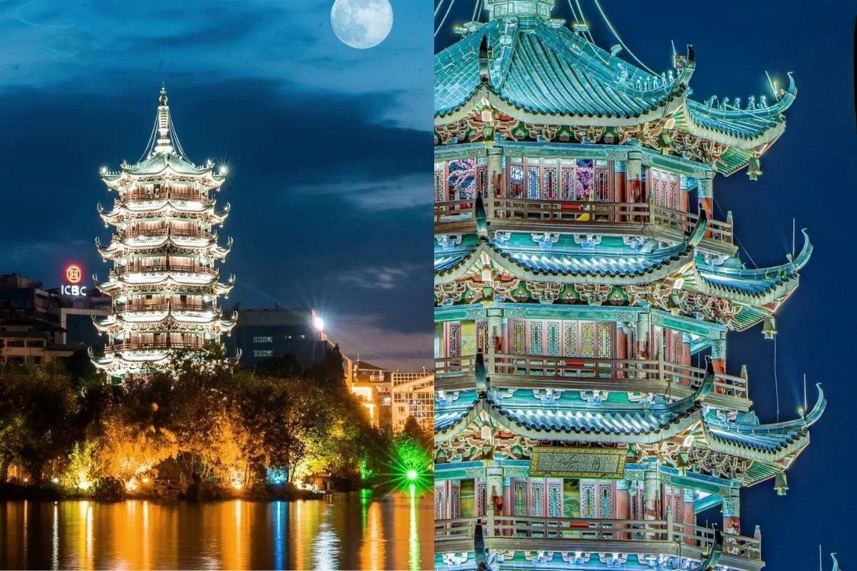 NHẬT NGUYỆT SONG THÁP – BIỂU TƯỢNG ĐÊM QUẾ LÂM GIỮA MẶT HỒ THƠ MỘNG