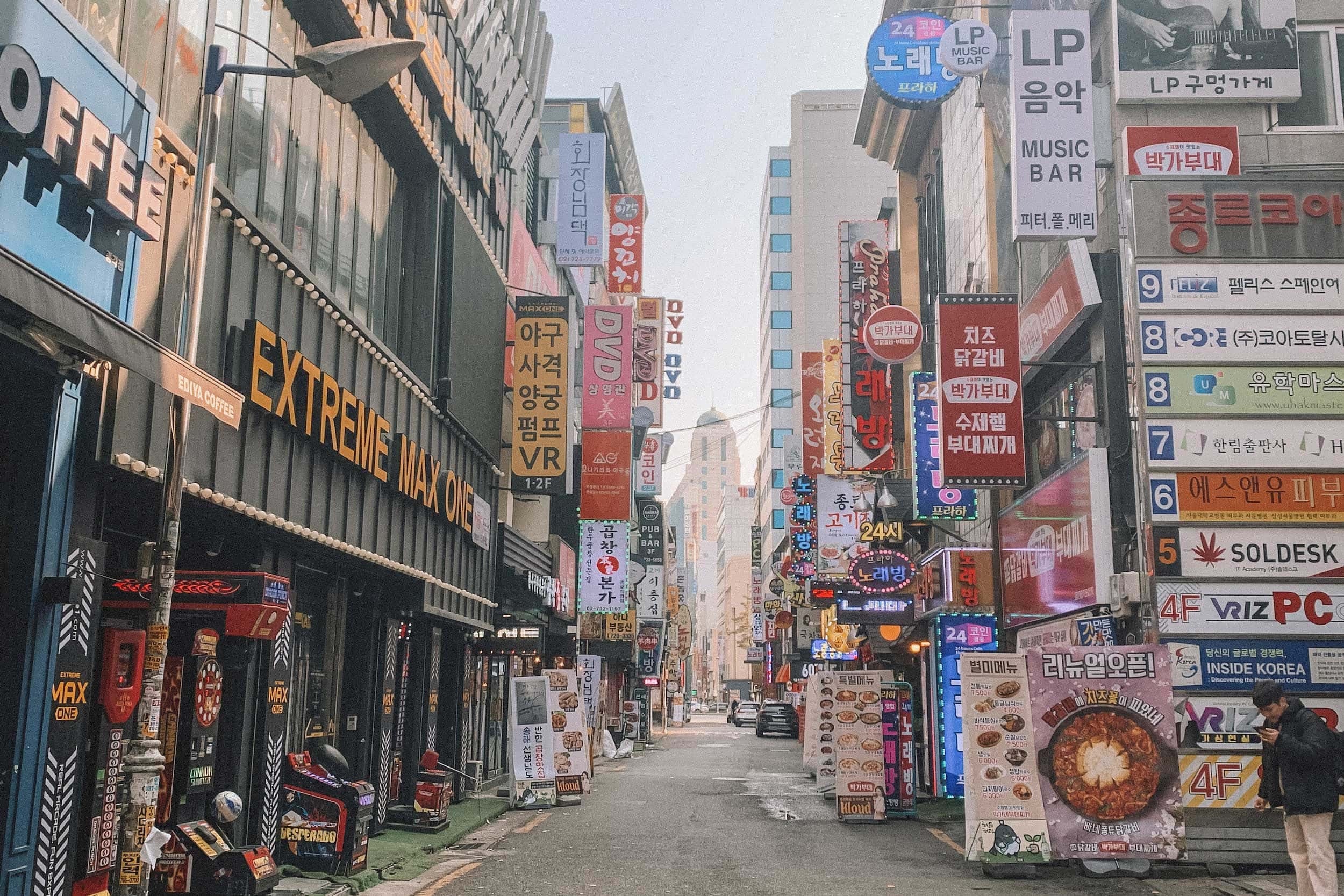 Mùa đông là thời điểm Myeongdong trở nên nhộn nhịp nhất. Các cửa hàng trang trí theo chủ đề Giáng Sinh, những món ăn đường phố như bánh cá, xiên gà nướng, khoai tây chiên bơ tỏi tỏa hương khắp phố. Đây cũng là khu vực lý tưởng để mua mỹ phẩm, quần áo giữ nhiệt và quà lưu niệm.