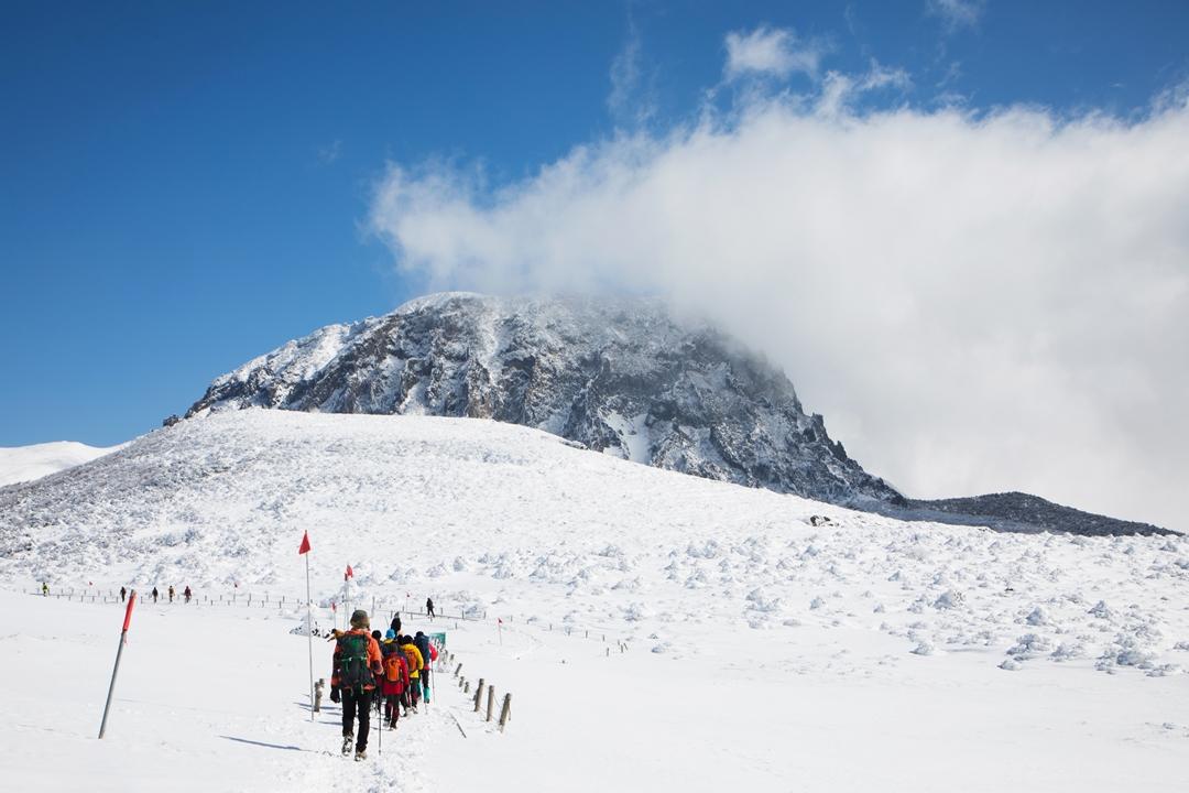 Jeju không phải lúc nào cũng có tuyết, nhưng vào tháng 1 thường xuất hiện những đợt tuyết đẹp ở khu vực núi Halla và các vùng đồi cao.