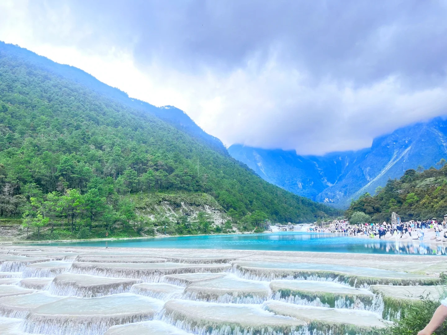 Lam Nguyệt Cốc – thung lũng xanh ngọc nổi bật với làn nước xanh trong vắt và khói sương nhẹ buổi sáng, tạo nên không gian thơ mộng, thanh bình. Đây là địa điểm lý tưởng để mặc đồ trắng, be hoặc pastel, giúp bức hình thêm phần hài hòa, nhẹ nhàng và cực “sống ảo” cho chuyến du xuân tại Lệ Giang.