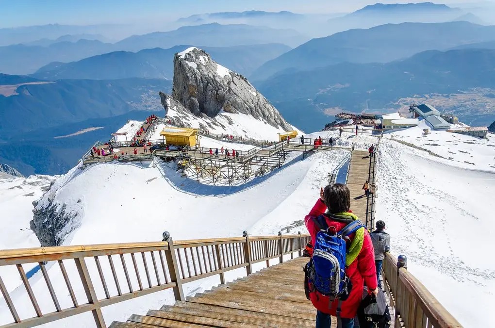 Tuyết Sơn Ngọc Long là đỉnh cao của hành trình mang đến trải nghiệm không thể quên với cáp treo lên đến độ cao 4.500m, nơi du khách có khả năng thưởng thức tuyết phủ trắng vào tháng 1. Khung cảnh trên đỉnh núi giống như thiên cảnh Bắc Âu, trắng xóa và hùng vĩ, tạo background hoàn hảo để chụp ảnh và cảm nhận trọn vẹn vẻ đẹp hùng vĩ, lạnh lùng nhưng đầy thơ mộng của Lệ Giang.