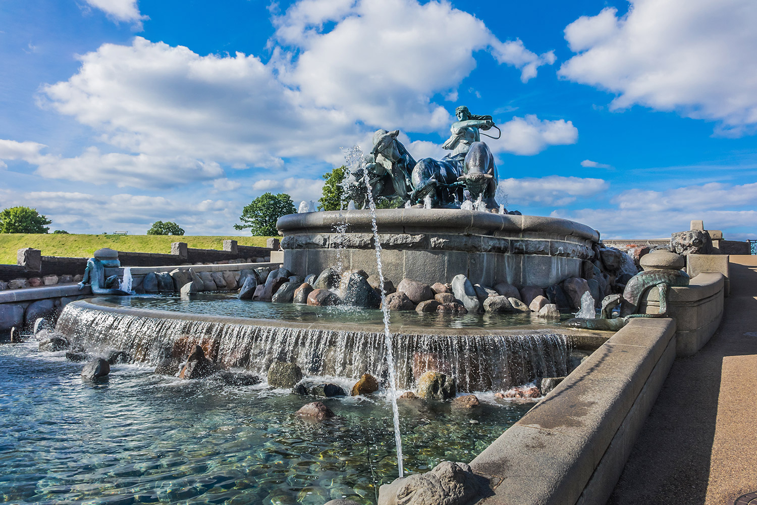- Đài phun nước Nữ thần Bắc Âu Gefion Fountain – đài tưởng niệm lớn nhất ở Copenhagen và được sử dụng làm giếng cầu nguyện. Đài phun nước mô tả câu chuyện thần thoại về việc tạo ra hòn đảo Zealand, nơi tọa lạc của Copenhagen. Đài phun nước có hình nữ thần Bắc Âu Gefjun trên lưng một chú bò đực. Theo truyền thuyết, bốn chú bò thực sự là con trai của nữ thần; người đã giúp cô cày nát hòn đảo Zealand từ Thụy Điển.
