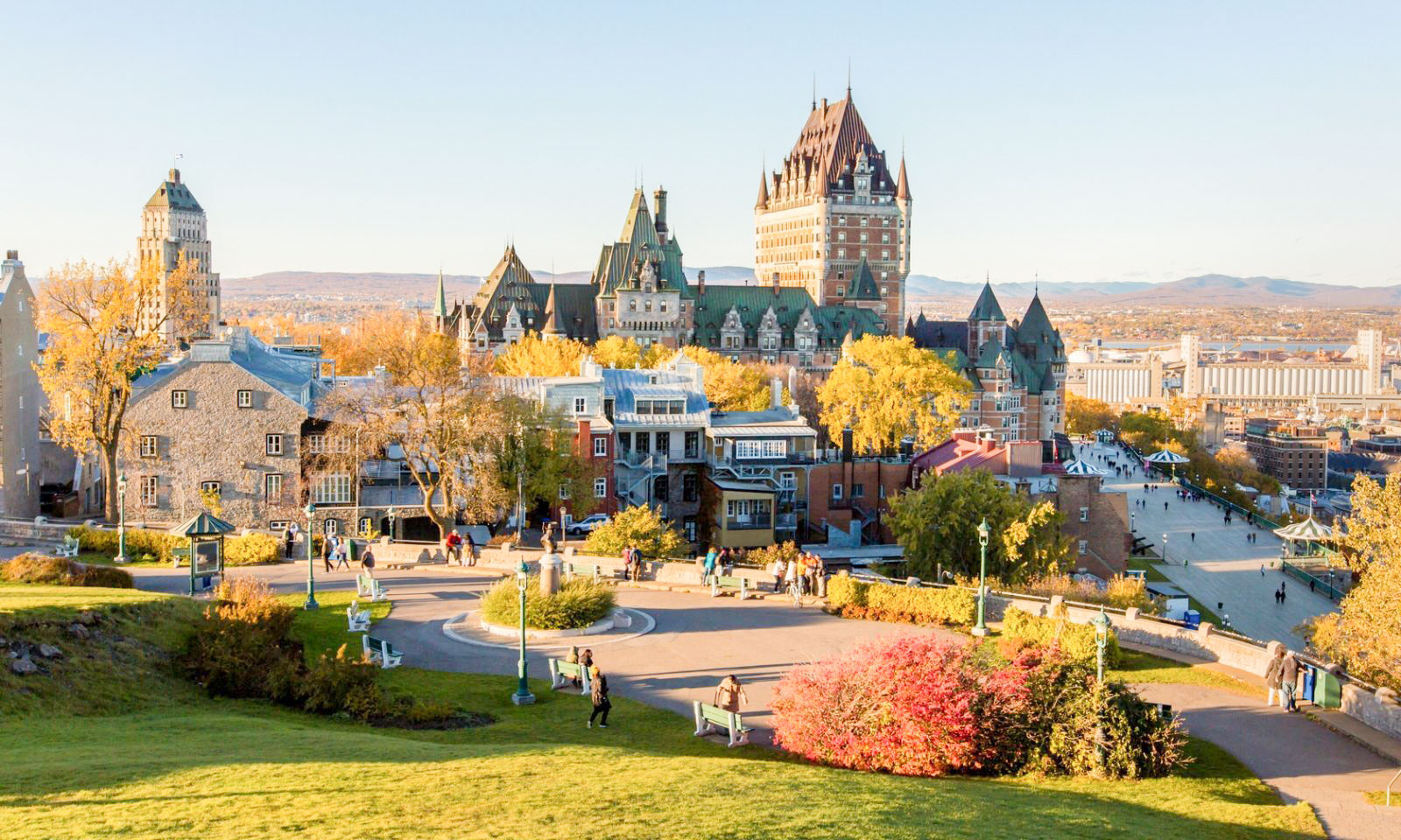 Thành phố Quebec là sự kết hợp hoàn hảo giữa kiến trúc châu Âu cổ kính và sắc lá thu rực rỡ. Những con đường lát đá cuội, tường thành cổ và cây phong đỏ vàng khiến nơi đây như một bức tranh lãng mạn.