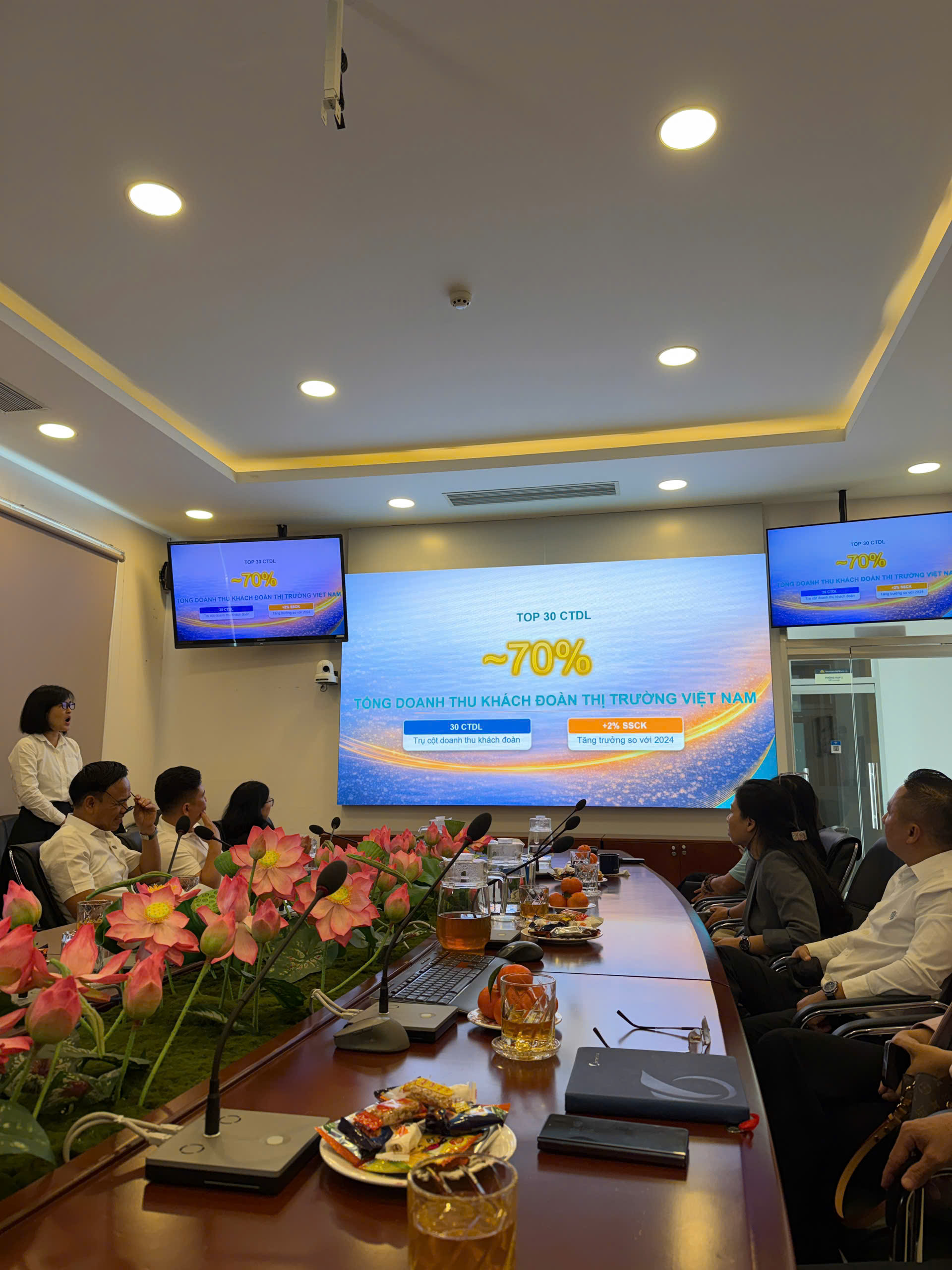 Tại buổi họp, Vietnam Airlines đã chia sẻ những con số ấn tượng về đóng góp của Top 30 công ty du lịch đối với thị trường khách đoàn. Theo đó, nhóm doanh nghiệp này hiện đang đóng góp khoảng 70% tổng doanh thu khách đoàn tại thị trường Việt Nam. Đây là minh chứng rõ nét cho vai trò đầu tàu của các doanh nghiệp lữ hành lớn trong việc thúc đẩy nhu cầu du lịch, kết nối điểm đến và gia tăng giá trị cho toàn ngành.