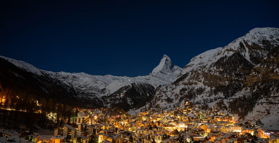 Nếu Hallstatt mang vẻ đẹp lãng mạn nhẹ nhàng, thì Zermatt lại là thiên đường của những người yêu núi cao. Nằm dưới chân ngọn núi Matterhorn nổi tiếng, Zermatt được bao quanh bởi những dãy núi tuyết hùng vĩ và bầu không khí trong lành tuyệt đối. Đây là ngôi làng cấm xe hơi nhằm bảo vệ môi trường nên du khách sẽ chỉ nghe tiếng bước chân trên tuyết hoặc tiếng chuông xe điện nhỏ chạy quanh làng.