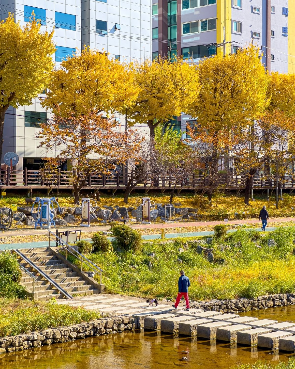 Ngay giữa trung tâm thủ đô, Cheonggyecheon là dòng suối nhân tạo nổi tiếng. Mùa thu, đôi bờ suối ngập tràn sắc lá vàng đỏ, phản chiếu dưới làn nước trong xanh, tạo nên không gian thư giãn, lãng mạn cho du khách và người dân Seoul.
