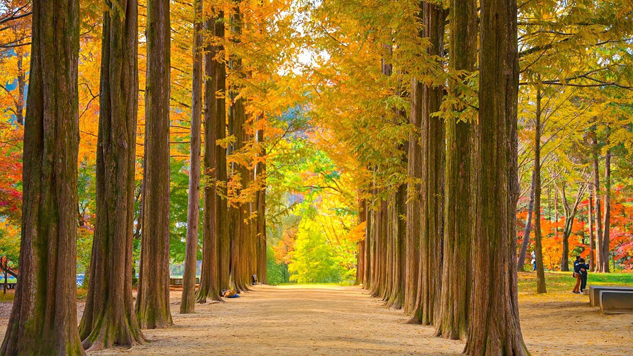 Đảo Nami là cái tên quen thuộc với du khách Việt Nam, nổi tiếng nhờ bộ phim “Bản Tình Ca Mùa Đông”. Vào thu, hàng cây ngân hạnh và phong đỏ rực rỡ, tạo nên khung cảnh lãng mạn như trong tranh. Đây là tọa độ check-in không thể bỏ lỡ cho những cặp đôi.