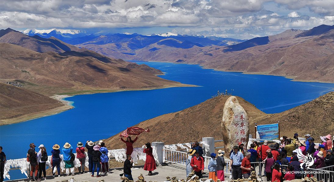 Hồ Yamdrok có màu nước xanh ngọc bích, được bao quanh bởi núi non và đồng cỏ rộng lớn. Hồ là điểm đến lý tưởng để chụp ảnh, cắm trại và trekking quanh bờ hồ. Du khách có thể tham gia tour Tây Tạng kết hợp thăm làng bản địa quanh hồ, thưởng thức ẩm thực truyền thống và tìm hiểu đời sống người dân.