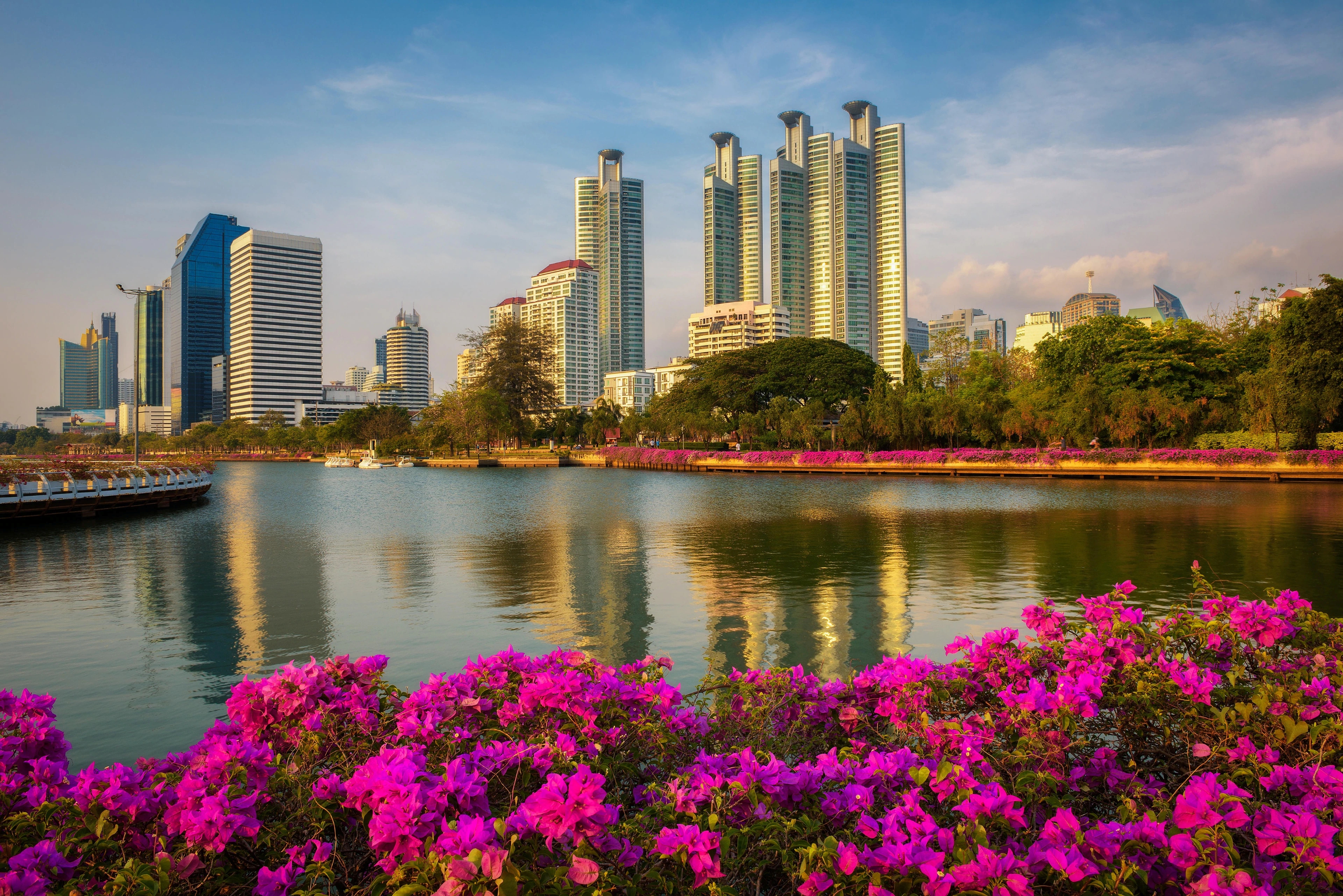 Nếu đến Bangkok tháng 1–2, bạn rất có thể bắt gặp hoa Pink Trumpet Trees nở rực tại: