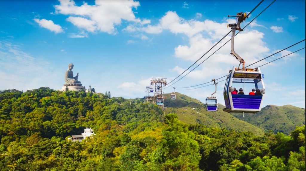 Đi cáp treo Ngong Ping 360 là một trong những trải nghiệm không thể thiếu khi du Xuân Hong Kong. Từ cabin, bạn có thể nhìn toàn cảnh: biển xanh bao la, rừng núi hùng vĩ, đường băng sân bay, ngôi làng Ngong Ping nhỏ xinh.