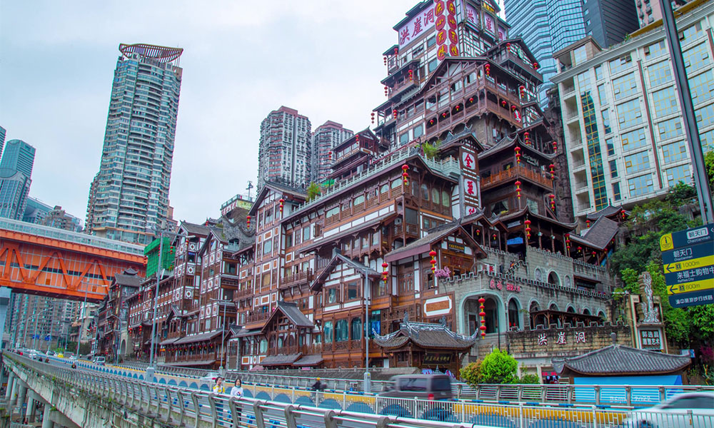 Trên những tầng cao, du khách có thể ngắm toàn cảnh sông Gia Lăng, cầu Chaotianmen và khu trung tâm Trùng Khánh. Còn tầng thấp lại là khu chợ, quán ăn và các cửa hàng lưu niệm. Dù là ngày hay đêm, Hồng Nhai Động đều đông đúc, náo nhiệt và tràn ngập năng lượng.