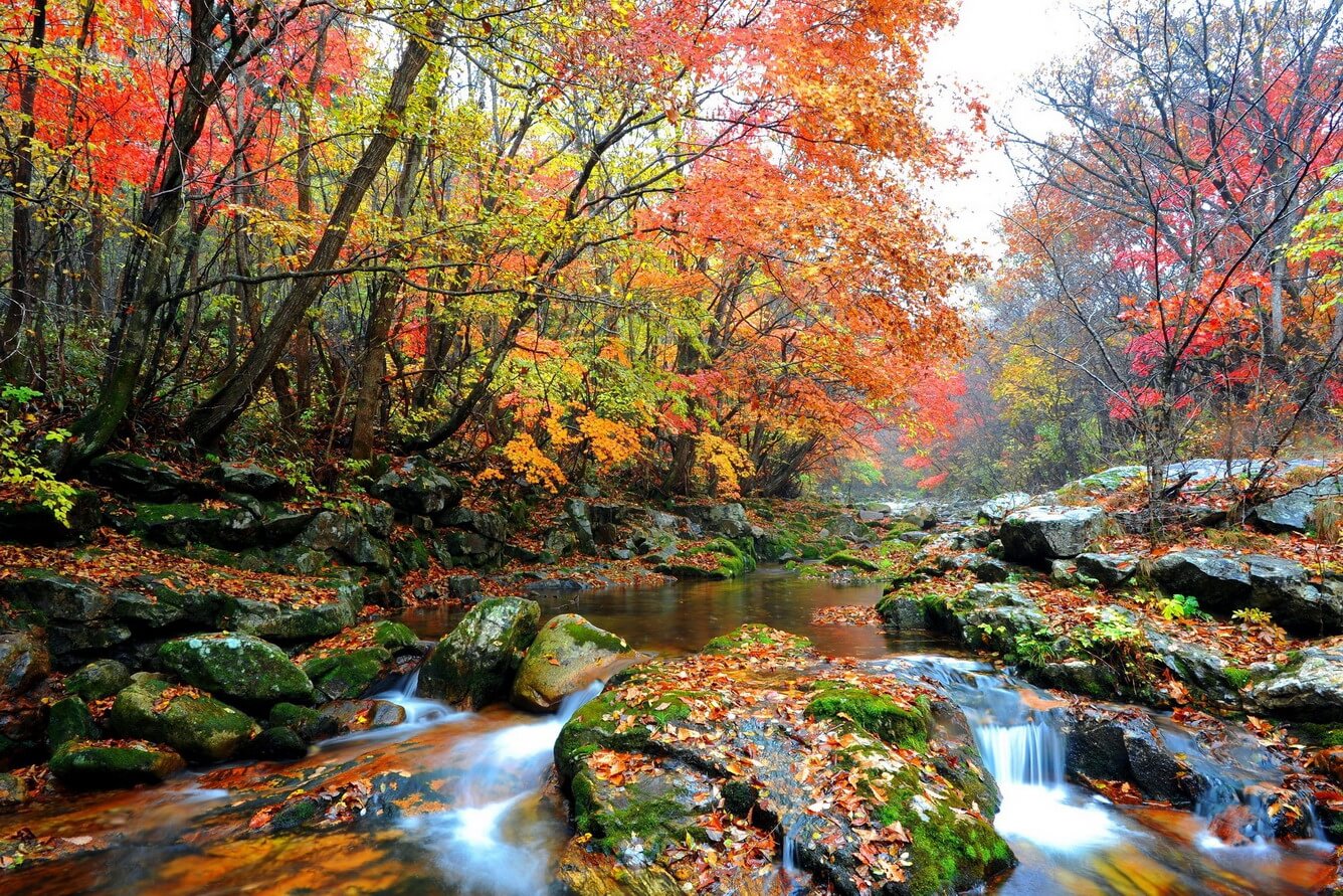 Công viên quốc gia Seoraksan: Một trong những nơi ngắm lá đỏ đẹp nhất, với những ngọn núi hùng vĩ và rừng cây thay lá rực rỡ.