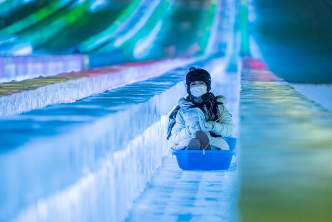 Thời điểm đẹp nhất: Buổi tối, khi ánh đèn LED biến công trình băng thành thế giới cổ tích.