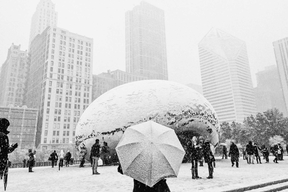 Chicago tự hào với những công trình kiến trúc thép và kính mang tính biểu tượng, và chúng trở nên ấn tượng hơn khi tuyết phủ.