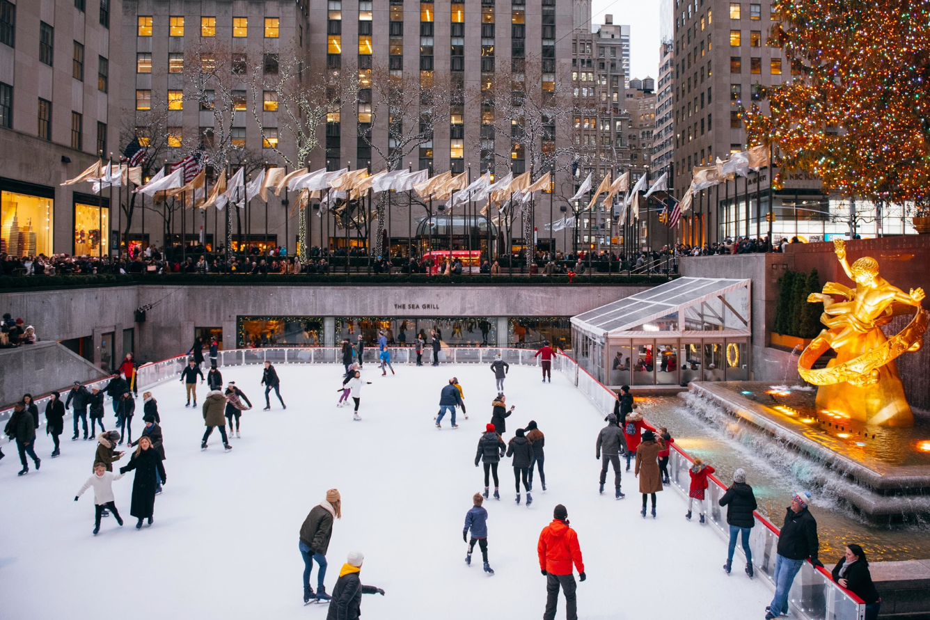 Trượt băng trong không khí lễ hội: Rockefeller Center với cây thông Noel khổng lồ và sân băng nổi tiếng là trung tâm của mùa đông New York. Bryant Park (Winter Village) cũng là một lựa chọn tuyệt vời với các gian hàng thủ công và đồ ăn ấm cúng.