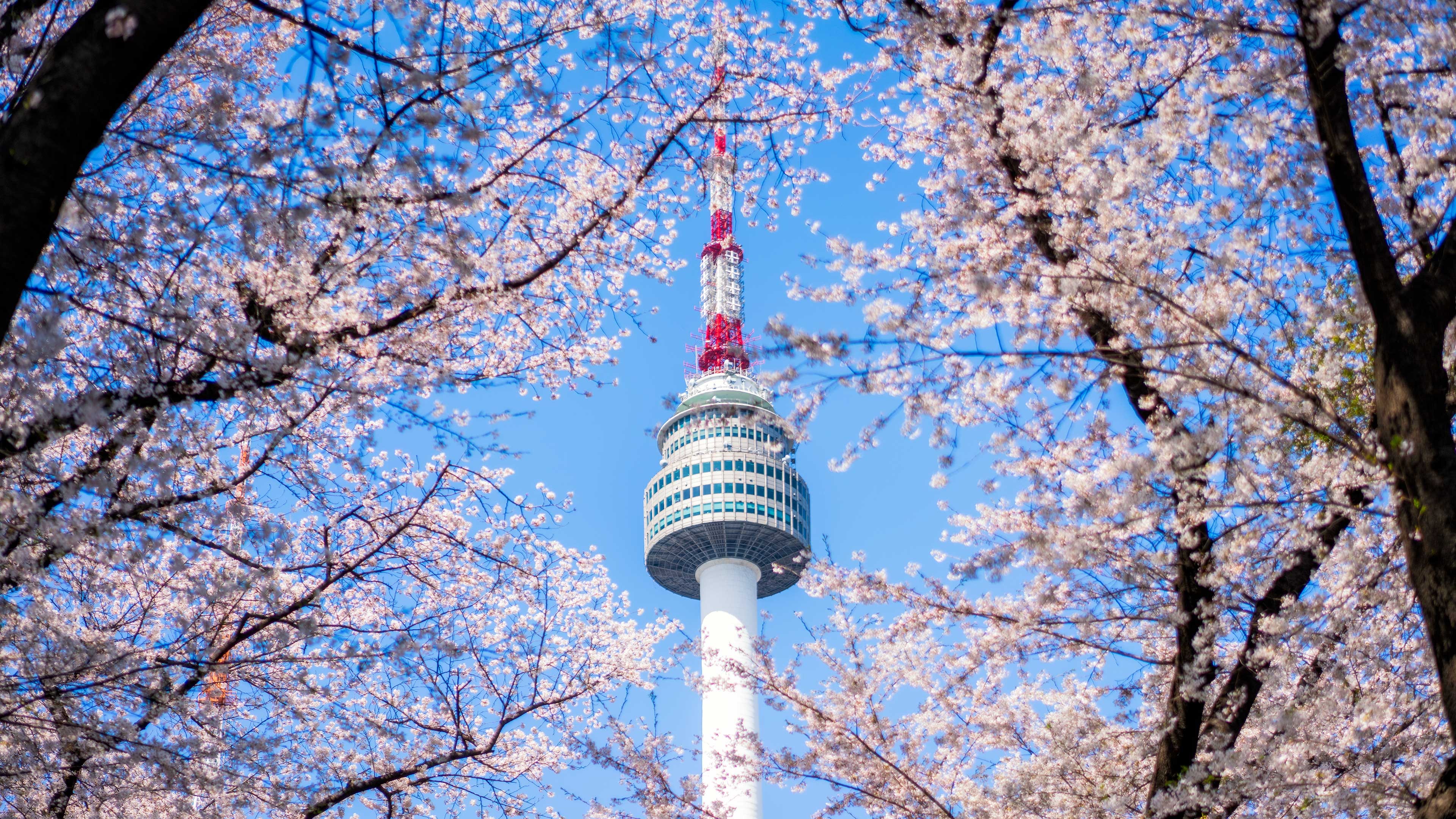 Đến cuối tháng 3, hoa anh đào sẽ lan rộng đến Seoul, nhất là dọc bờ hồ Yeouido và Công viên Namsan. Sakura ở Hàn Quốc mang sắc trắng tinh khôi, khi nở rộ theo từng cụm lớn tạo cảm giác như một “cơn mưa hoa” mỗi khi có cơn gió nhẹ thoảng qua.