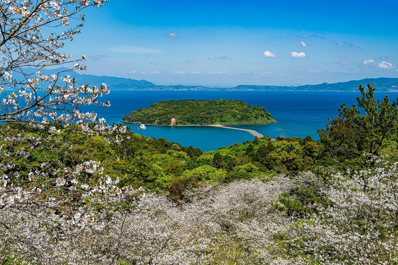 Ibusuki, tỉnh Kagoshima, nổi tiếng với trải nghiệm cát nóng và suối nước nóng thiên nhiên. Mùa hoa anh đào từ cuối tháng 3 đến đầu tháng 4 biến các công viên và bờ biển xung quanh thành không gian mùa xuân rực rỡ.