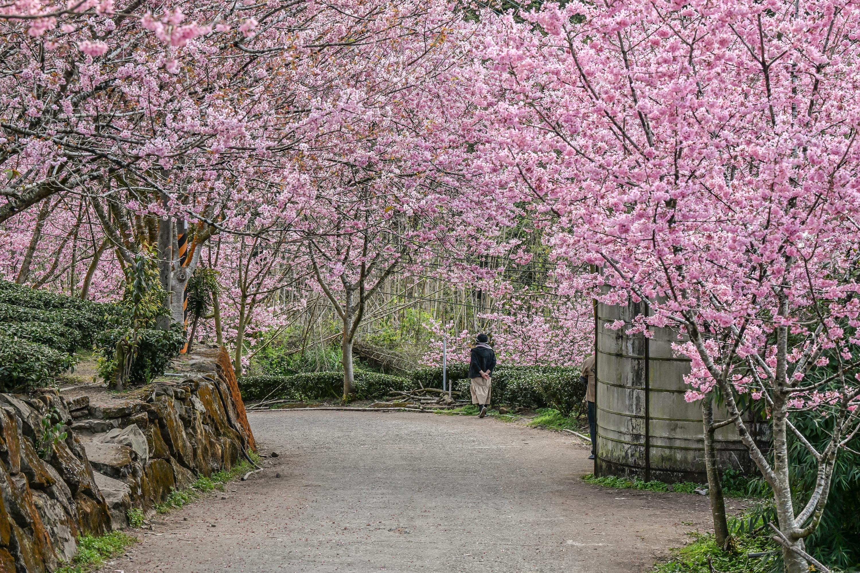 Alishan nổi tiếng với tuyến đường sắt cổ và cảnh quan núi rừng mùa xuân. Hoa anh đào nở rộ từ cuối tháng 2 đến giữa tháng 3, trải dài dọc theo các đường ray và công viên trên núi.