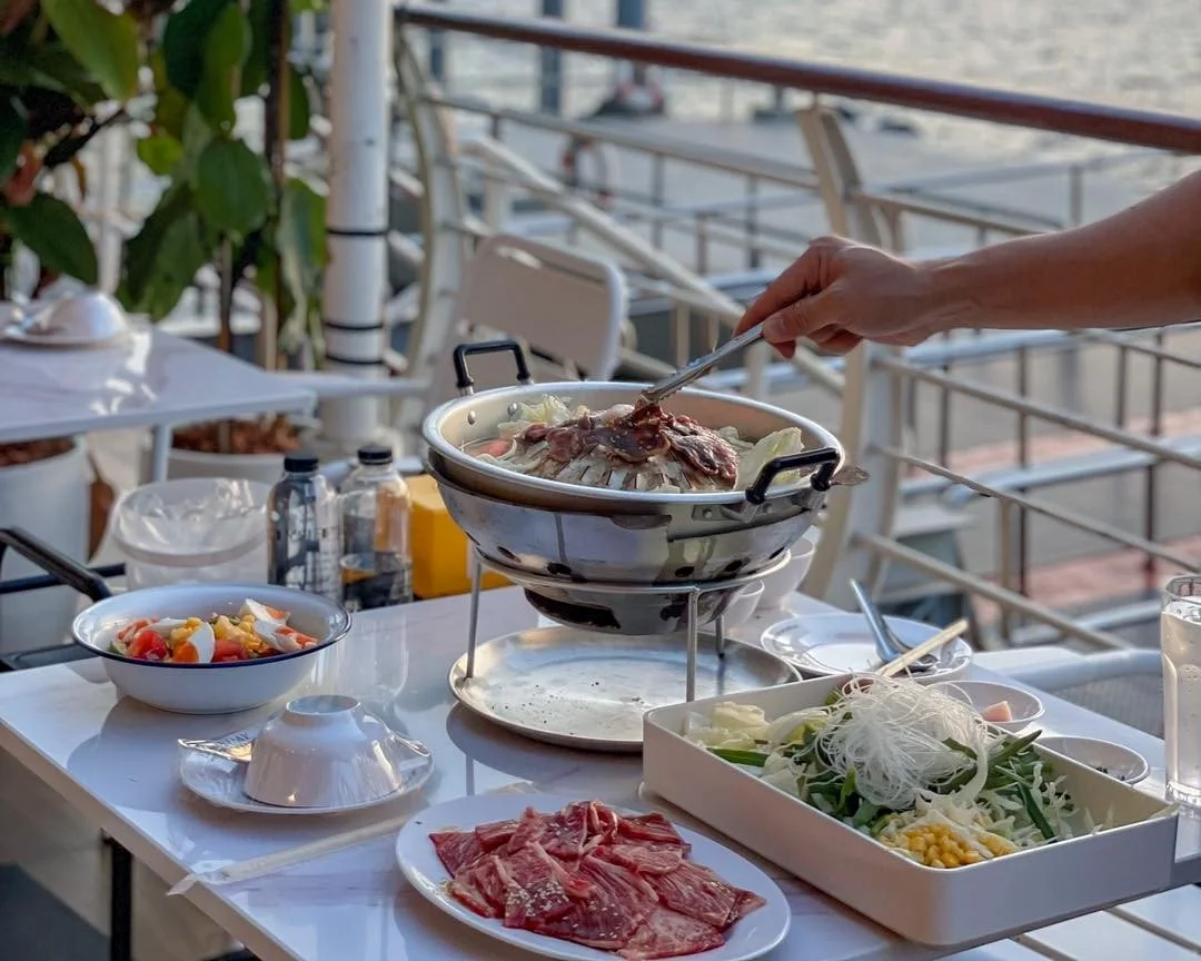 Mookata là kiểu vừa nướng vừa lẩu, cực hợp cho nhóm bạn, vừa ăn vừa trò chuyện, ăn no trước khi đi xem pháo hoa countdown, tạo không khí vui vẻ và ấm cúng.