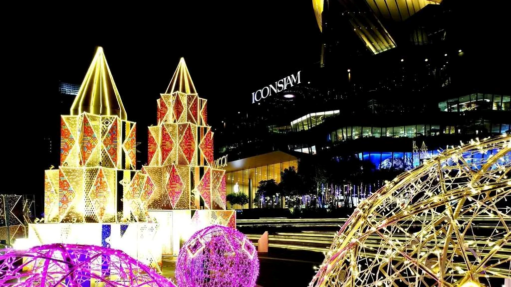ICONSIAM là trung tâm thương mại sang trọng bậc nhất Bangkok, nổi bật với cảnh quan rực rỡ, các màn trình diễn ánh sáng và pháo hoa ngoạn mục bên bờ sông Chao Phraya. Pháo hoa thường kéo dài 10–15 phút. Xung quanh đó có sân khấu và các trung tâm thương mại được trang trí lộng lẫy. Du khách có thể tha hồ check- in.